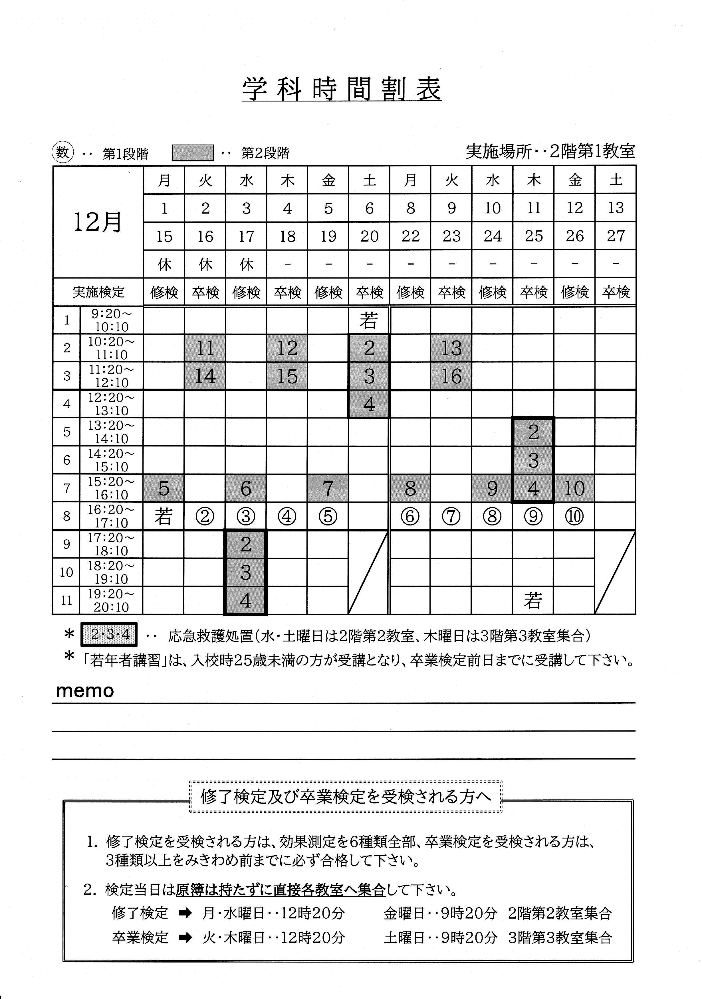 2025.11.27 2025年12月の学科時間割表