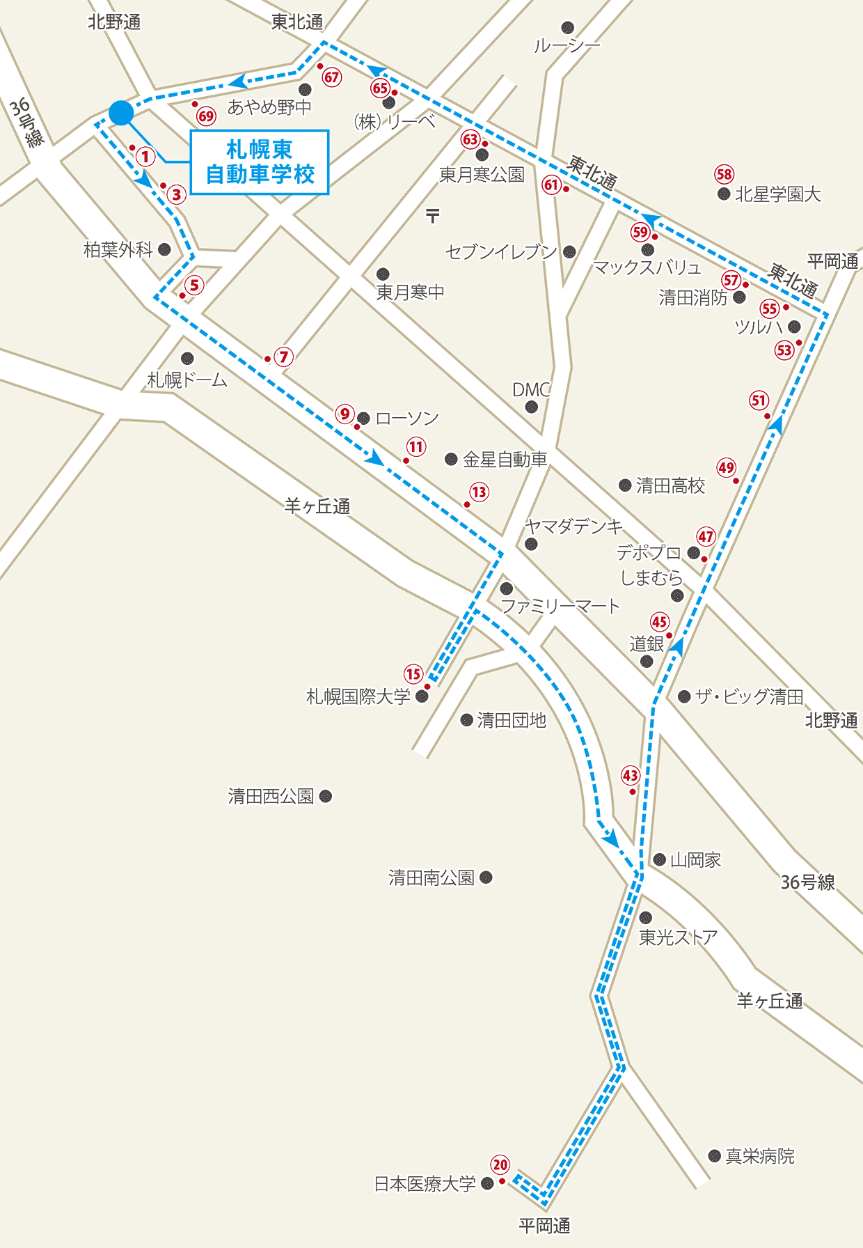 路線③ 清 田→真 栄→平 岡→北 野