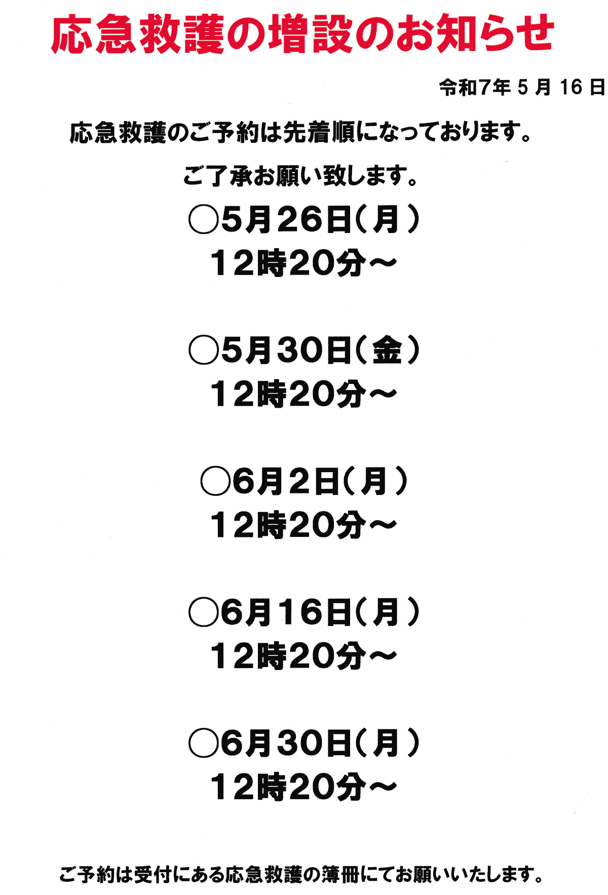 2025.05.16 応急救護の増設のお知らせ