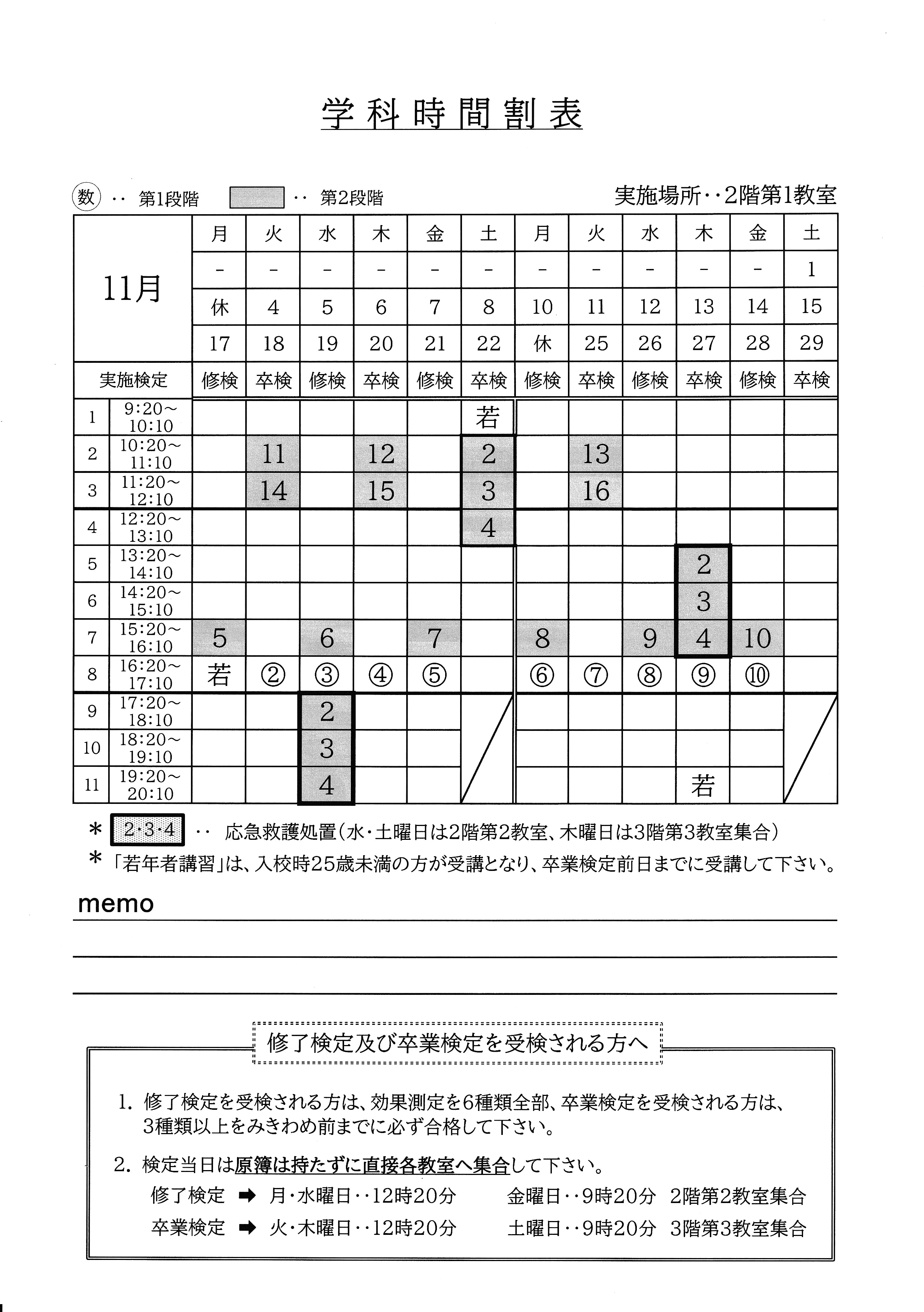 2025.11.04 2025年11月の学科時間割表